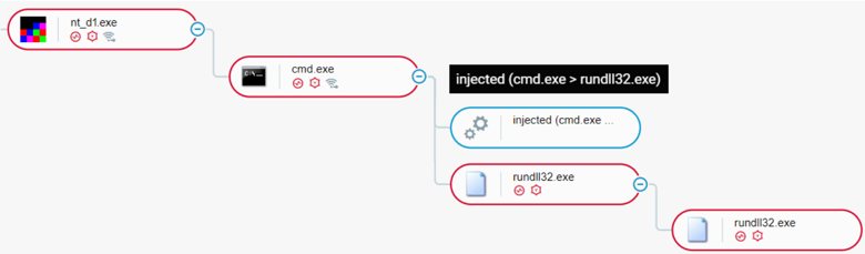 Using Meterpreter, the attackers injected Cobalt Strike and other Metasploit payloads into the rundll32.exe process.
