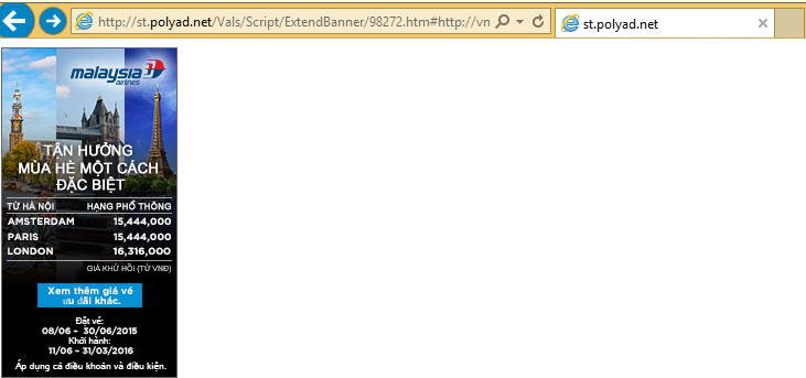 An example of a Vietnamese-targeted campaign redirecting a non-targeted individual using IE to an advertisement.