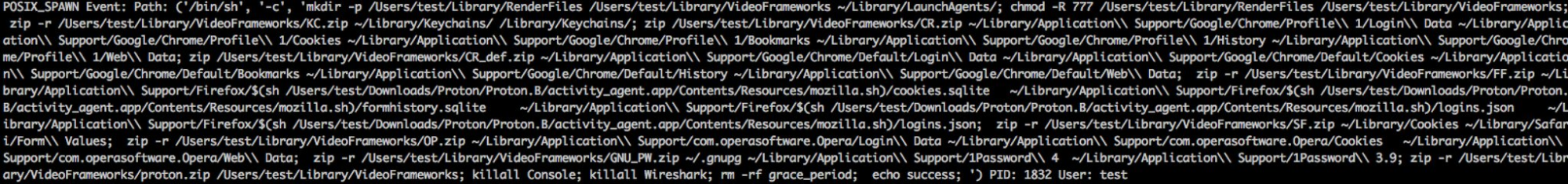 All of that data will be zipped again to a file called Proton.zip. This file will be saved in the ~/Library/VideoFrameworks directory, which will then be exfiltrated to the attackers.