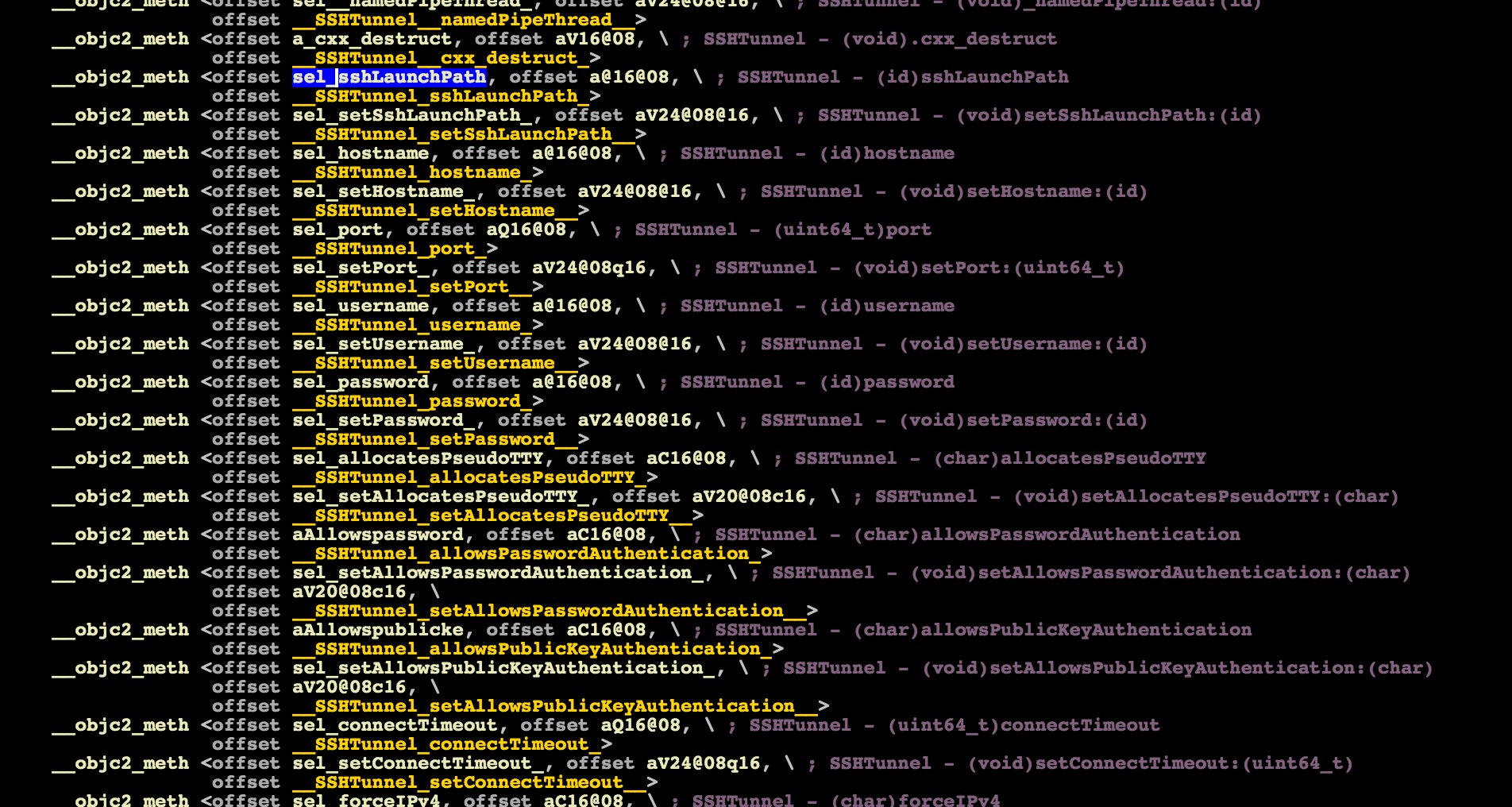 This step makes it hard for researchers to analyze this malware when it runs since all of these programs will be terminated unexpectedly. A simple workaround is to simplee tee the logs to another file, use iTerm instead of Terminal and tcpdump or Tshark instead of Wireshark ¯\_(ツ)_/¯.