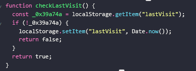The malicious script (j.js) stores a data item called “lastvisit” in the browser’s local storage to track whether the user has previously visited the webpage. If the user has previously visited the site, the script refrains from generating the iframe, allowing the attacker to mask their presence.