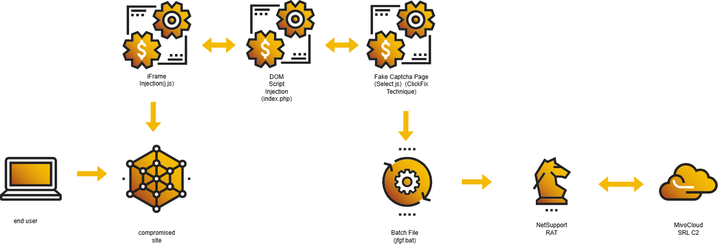 Payload Delivery: Users, following the fake CAPTCHA instructions, download the NetSupport RAT.