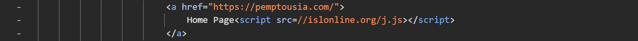 Threat actors additionally embed malicious JavaScript within the anchor tag of the "Home Page" link. As a result, when users click what seems to be a normal "Home Page" link, the browser tries to navigate to the home page while simultaneously loading and executing the malicious script (j.js).