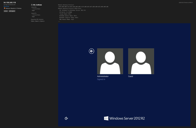 All NetSupport Connectivity Servers identified in the recent intrusion we investigated are located within the (94.158.245[.]0/24) network block, which is registered to MivoCloud SRL, a hosting provider operating data centers in Moldova. Shodan scans revealed that these IP addresses are associated with Windows Server operating systems and have exposed TCP/3389 (RDP) and TCP/443 (HTTPS) ports.
